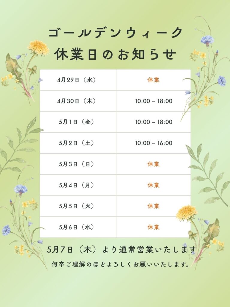 ゴールデンウィークのお知らせ